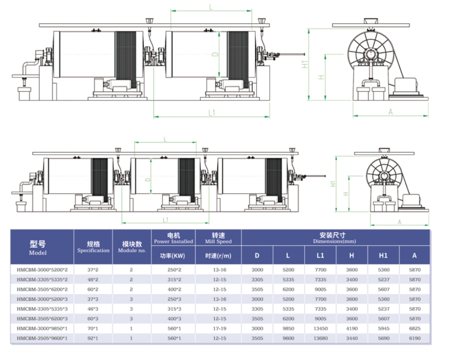 the new application of inline continuous mills.Based on the grinding characteristics,each mill's rotation