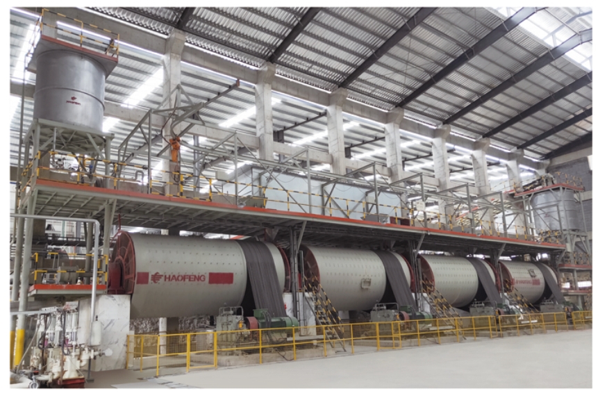 grinding.Grinding media,water,deflocculant (solid or liquid) feeding is arranged for each mill and in instanly under control.